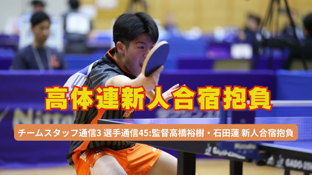 チームスタッフ通信3 選手通信45:監督・高橋裕樹 選手・石田蓮 新人合宿抱負